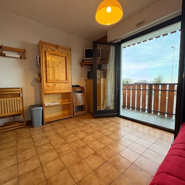 Il se compose comme suit : une entrée avec coin montagne, un séjour avec kitchenette, une salle de bains avec fenêtre, un WC séparé et un beau balcon. Une cave vient compléter ce bien. Le parking est commun à la copropriété. Local à skis dans l'immeuble.