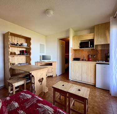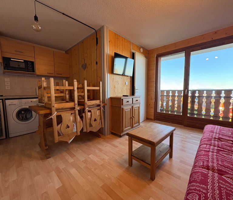 Studio de 18,71m2 meublé style montagne avec terrasse, cave et parking au sous-sol